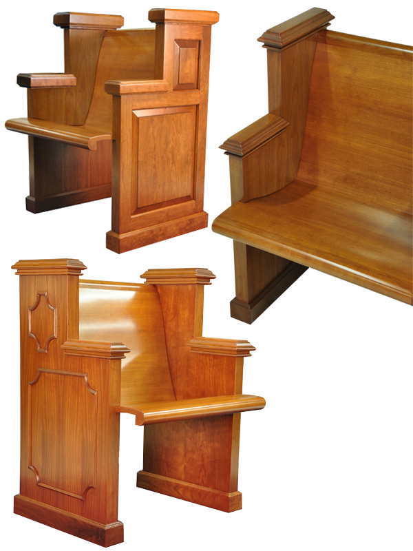 Bench bodies are ergonomically designed with curved plywood and solid wood caps.