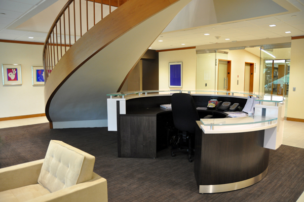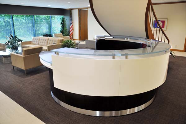 This custom reception desk, designed by Melissa M. Insinga of Parette Somjen Architects L.L.C,